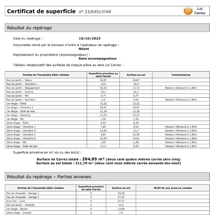 Implantée sur une belle parcelle arborée de 1 543 m², la maison développe plus de 200 m² habitables : un vaste séjour double avec cheminée, une véranda plein sud, six chambres, un bureau, ainsi que deux garages et une cave.