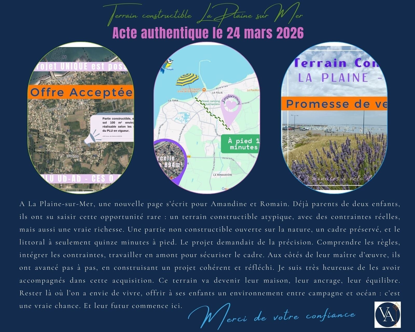 Promesse de vente signée - PC accordé décembre 2025 - Découvrez ce terrain de 894m² non viabilisé , au calme, situé à La Plaine-sur-mer.